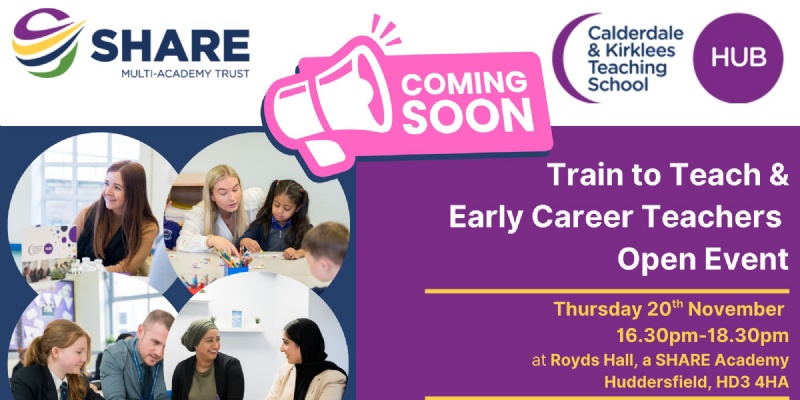 Thinking about a career in teaching? If so, then why not come along to our Open Event on Thursday 20th November at Royds Hall, Huddersfield. From first steps to first classroom. Start your teaching journey with us.